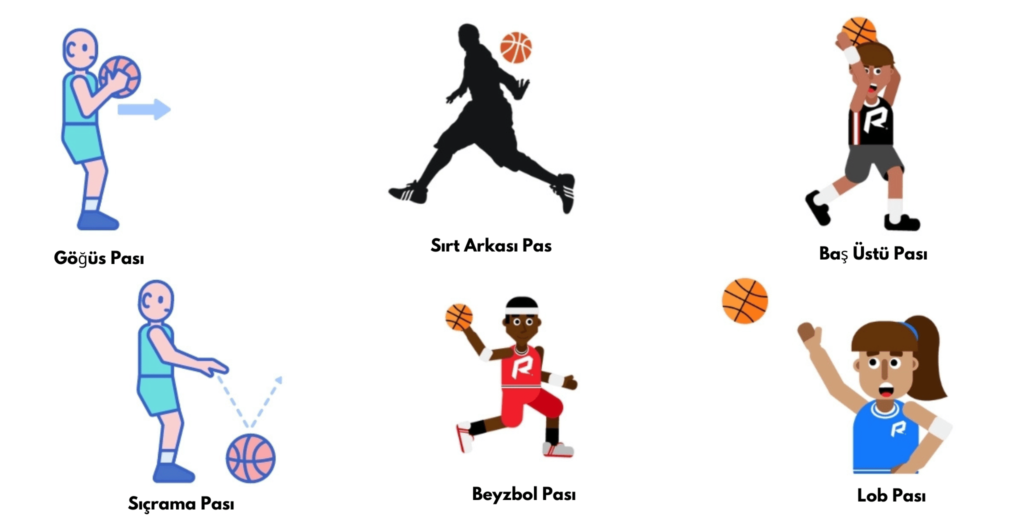 Lob Pası: Bu, göğüs pasının bir türüdür ve topun göğüsten atılmasıyla savunmanın başı üzerinden geçerek hafif bir yay oluşturur. Genellikle pota beslemeleri, pick and roll oyunlarında ve alley-oop’larda kullanılır.